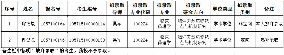 以上为我校2025年“申请-考核”制全日制博士研究生临床药理学拟录取名单变动情况公示,公示期为:2025年6月12日至2025年6月18日。名单如有变动,将对变动部分作出说明,并对变动内容另行公示。